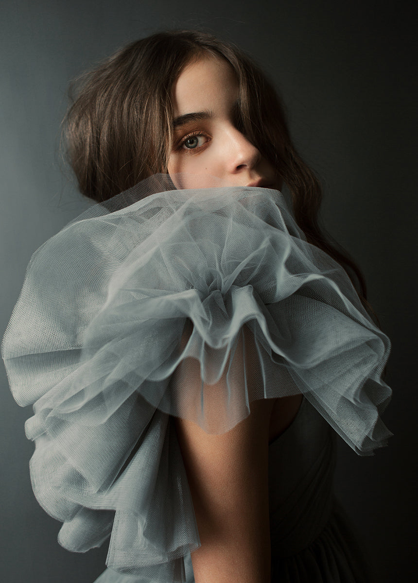 - Gathered voluminous tulle shoulders