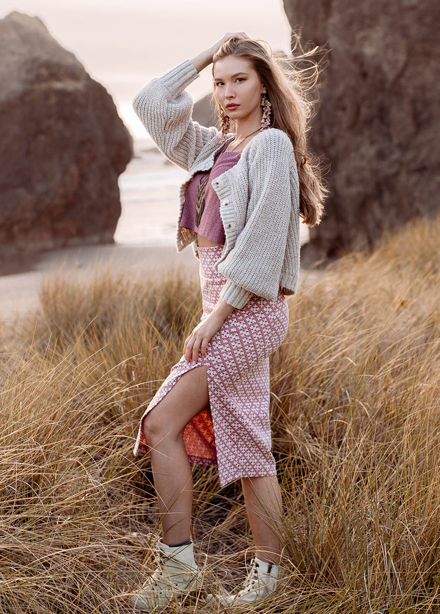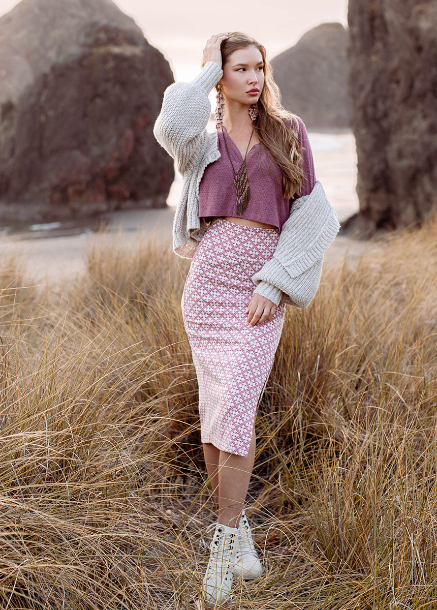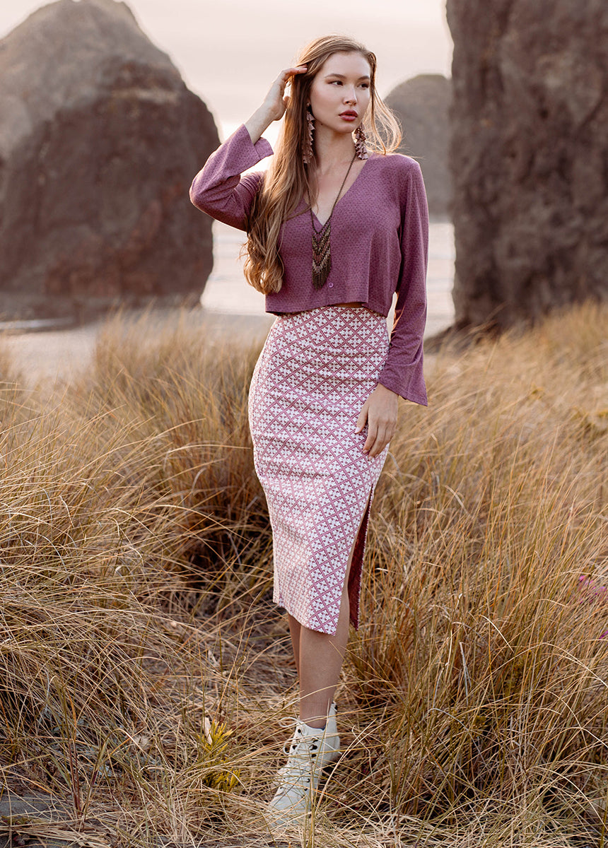 Elevate your wardrobe with the rosette Fable set. designed for busy days when comfort meets style. This versatile outfit features a long sleeve V-neck top with slight bell sleeves. making it perfect for any occasion. The midi-length skirt hugs your figure with a flattering tight fit and a daring leg slit for added flair. Whether you wear the pieces together or mix and match. convenience is at your fingertips. Discover the ideal blend of comfort and sophistication with the Fable set today!