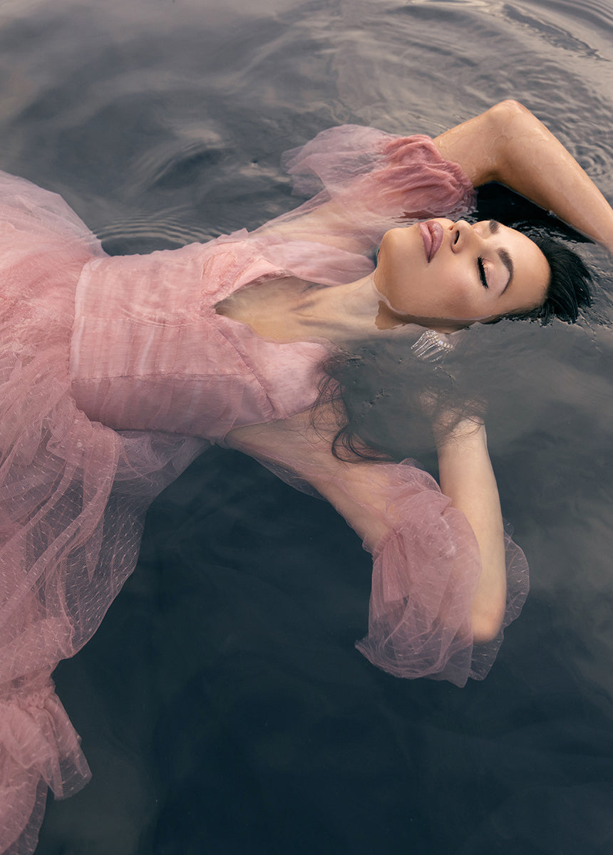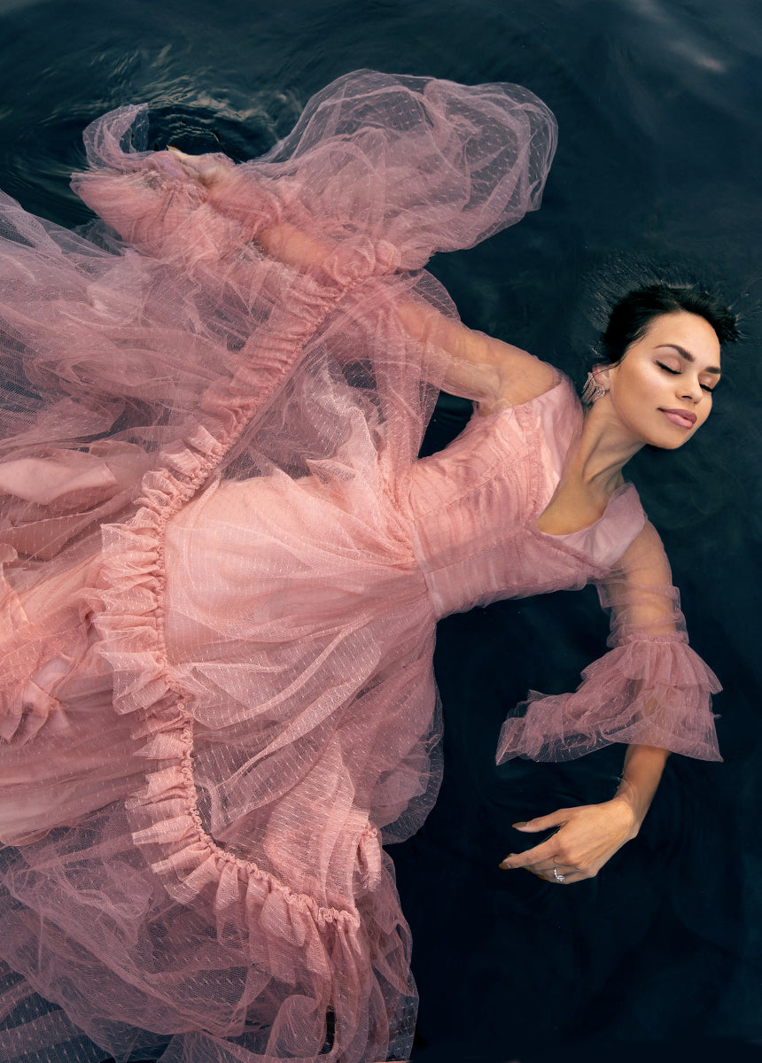 - Pleated tulle bodice