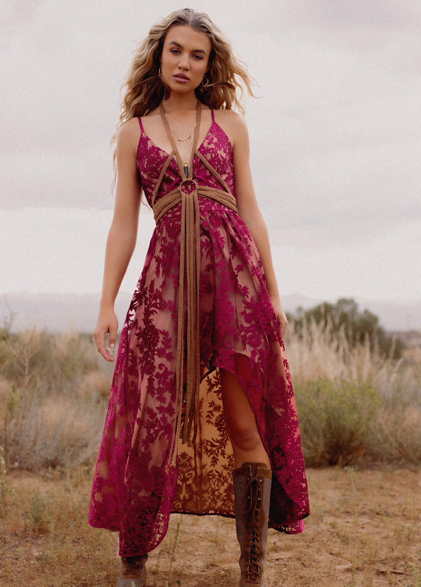 Step into elegance with our stunning embroidered lace Holli Dress. perfect for any occasion! Featuring a chic maxi to mini high-low hem. this dress beautifully showcases your style. The lace-up front and fitted bodice create a flattering silhouette. while adjustable straps ensure a customized fit. Fully lined for comfort. this dress feels as good as it looks. Elevate your wardrobe with this timeless piece that effortlessly blends sophistication and charm!