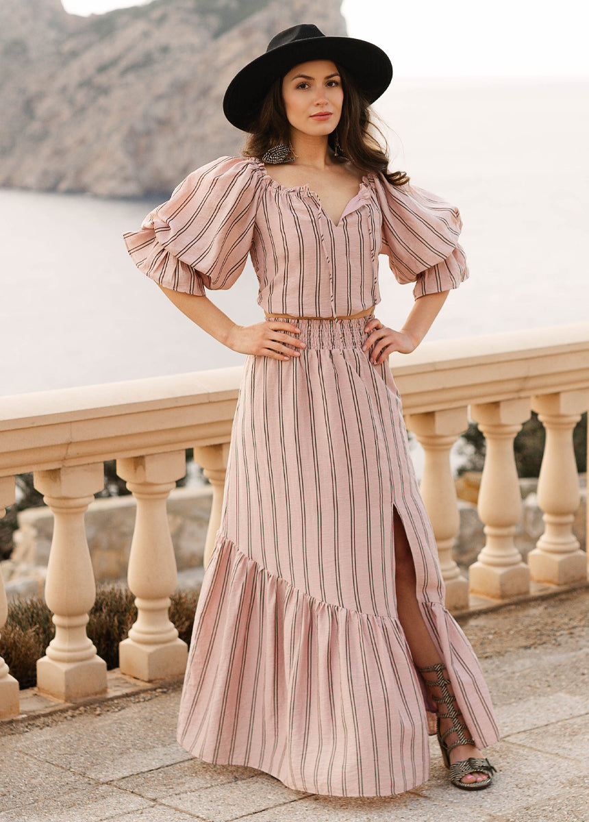 The Kara Set is a perfect blend of elegance and versatility. Featuring tunneled elastic details. tie it up for a playful bubble top look. or wear it relaxed and flowy for effortless boho elegance. Whether you're attending a special event or seeking an easy everyday look. the Kara Set brings timeless boho charm to your wardrobe.