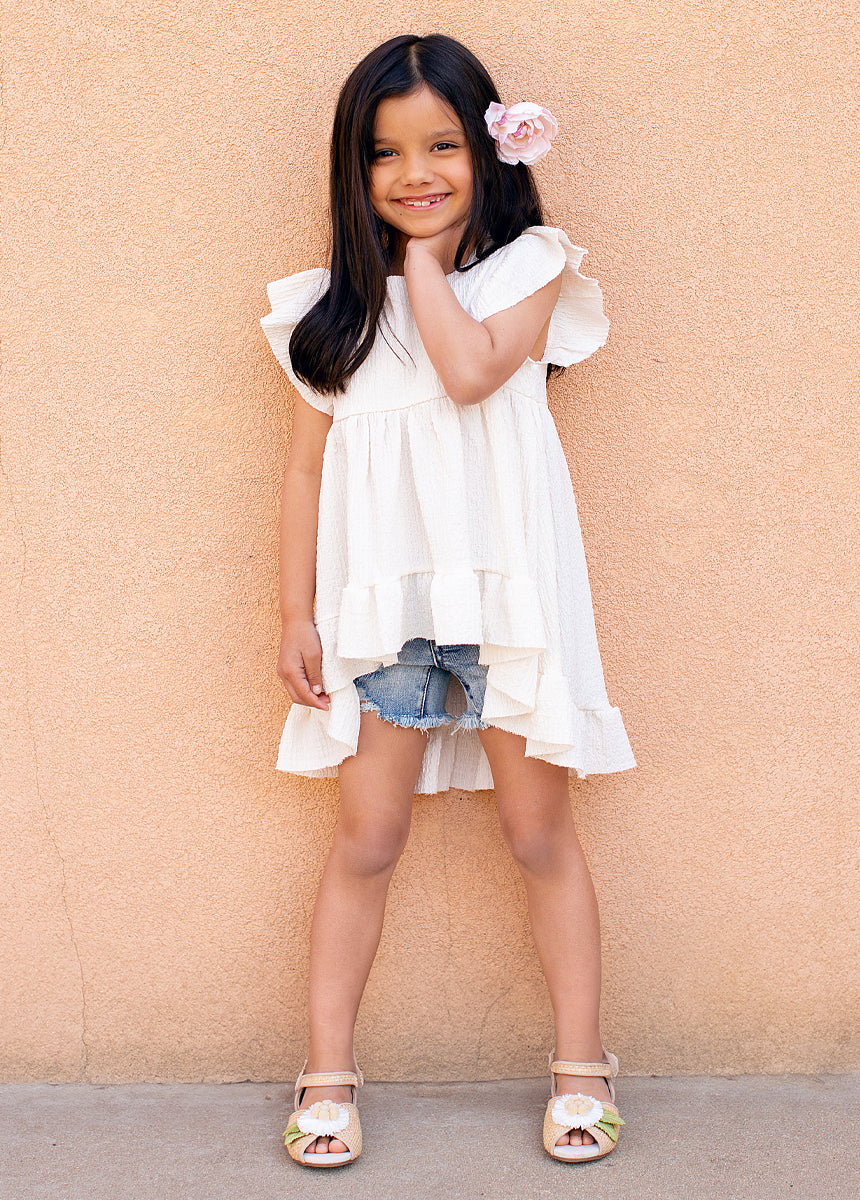 Step into spring with a dose of girly charm with our Mercedes Peep Toe Flats in Straw. These perfect spring flats elevate any outfit with their playful and boho design.