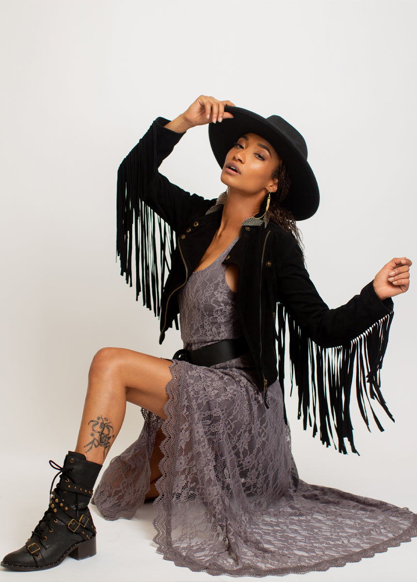 Stay on-trend in our luxe genuine leather combat boot featuring studded straps & antique brass buckles.