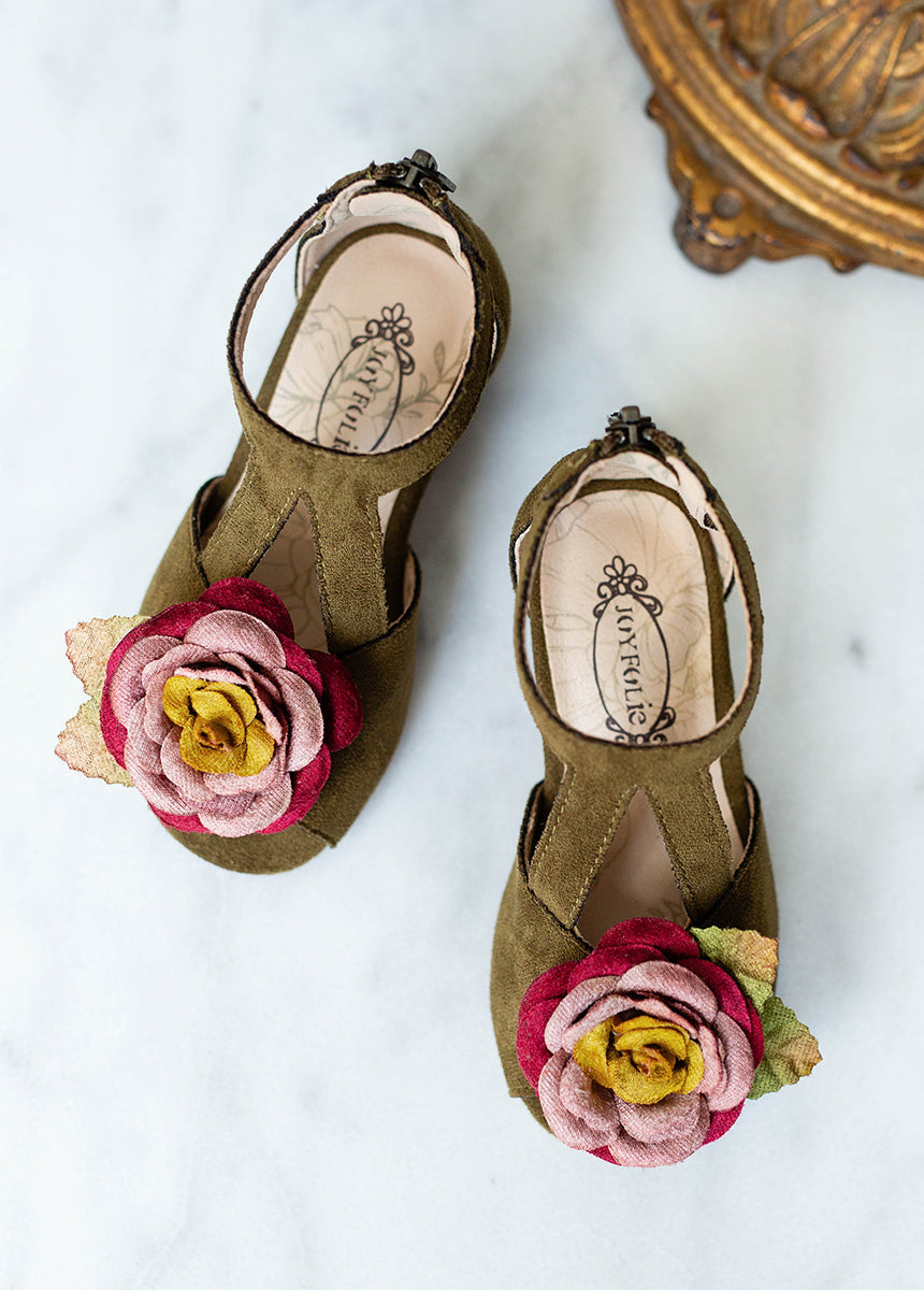 Complete her look with our Orelia Heel for your little one. featuring an intricately designed applique flower that adds a touch of charm and elegance. This stylish heel pairs perfectly with our Tianna Dress and Elide Dress. making it a versatile choice for any special occasion. Crafted for both comfort and style. this heel ensures your little girl stands out with grace and confidence.