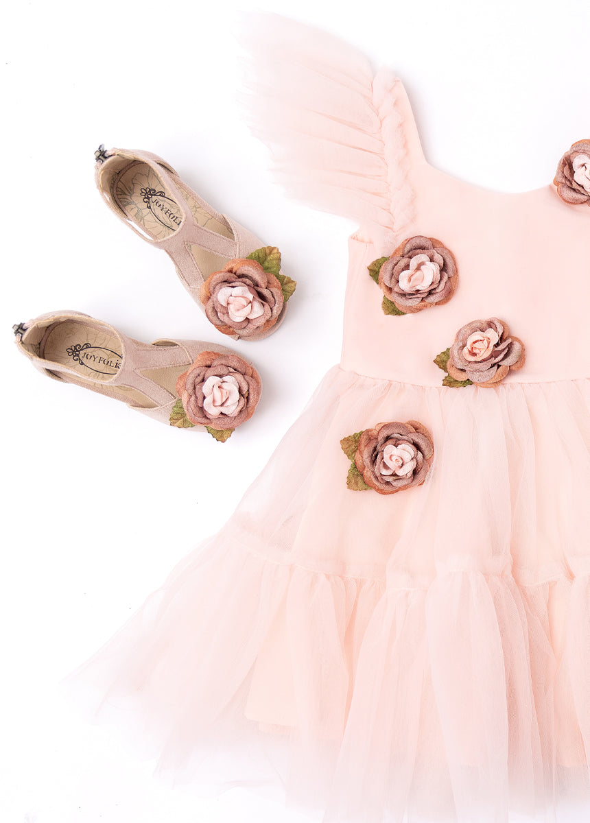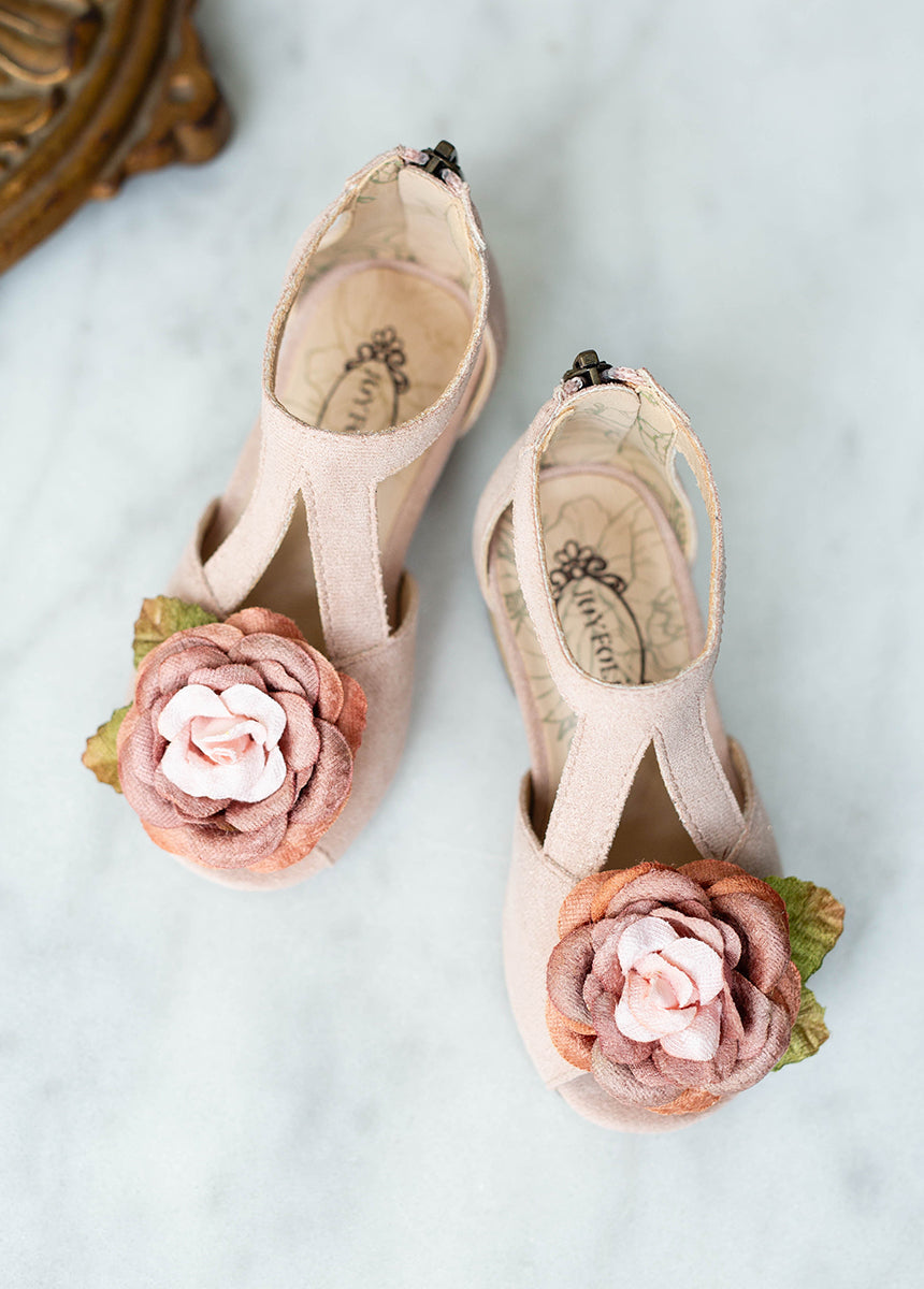 Complete her look with our Orelia Heel for your little one. featuring an intricately designed applique flower that adds a touch of charm and elegance. This stylish heel pairs perfectly with our Tianna Dress and Elide Dress. making it a versatile choice for any special occasion. Crafted for both comfort and style. this heel ensures your little girl stands out with grace and confidence.