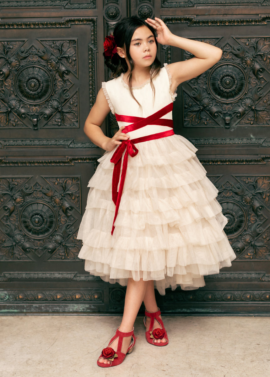 Complete her look with our Orelia Heel for your little one. featuring an intricately designed applique flower that adds a touch of charm and elegance. This stylish heel pairs perfectly with our Tianna Dress and Elide Dress. making it a versatile choice for any special occasion. Crafted for both comfort and style. this heel ensures your little girl stands out with grace and confidence.