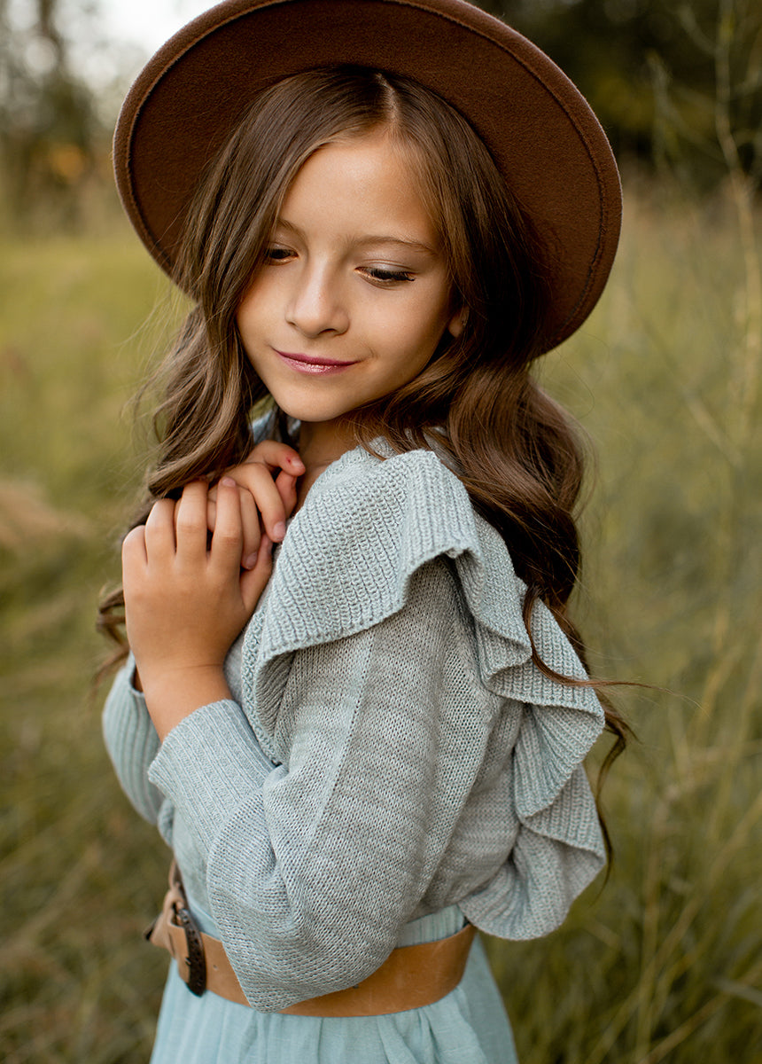 This fun ruffled sweater is an essential addition to her cool-weather wardrobe.