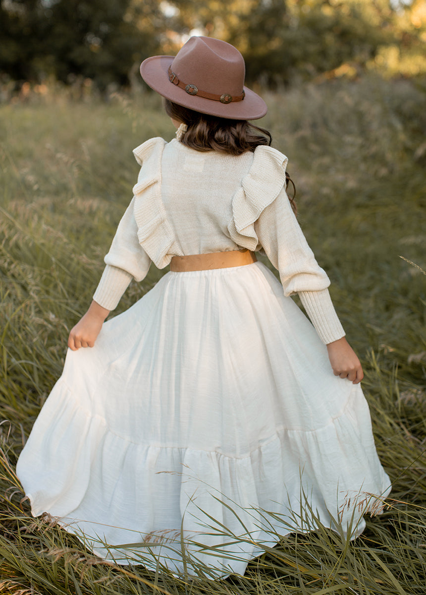 This fun ruffled sweater is an essential addition to her cool-weather wardrobe.
